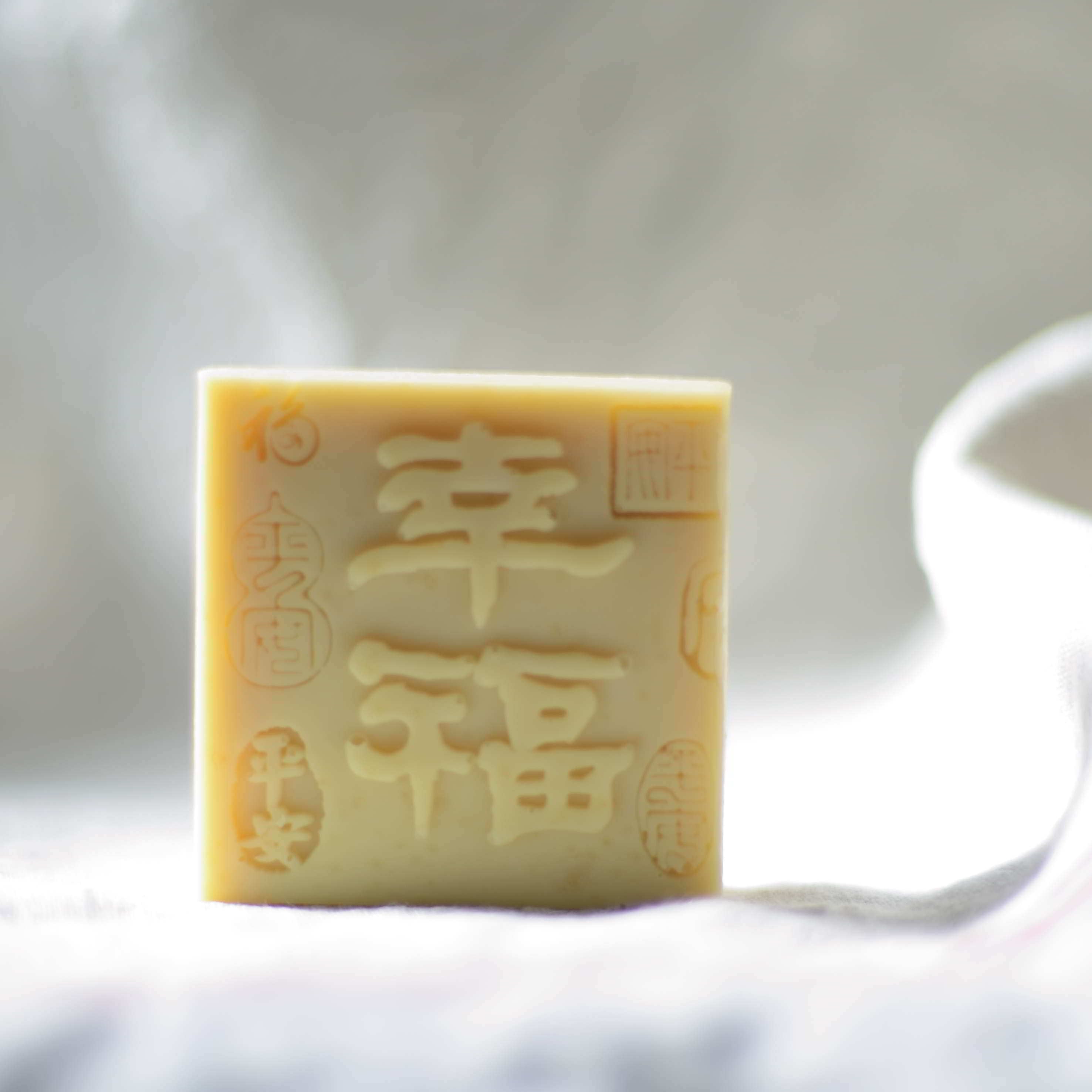 材料:オリーブオイル、米油、ひまわり油、ココナッツオイル、キャスターオイル 、水、苛性ソーダ、コンブチャ、桃膠、精油(フランキンセンス、ゼラニウム、ベチパー、バニラ、ベンゾイン)、ビタミンE